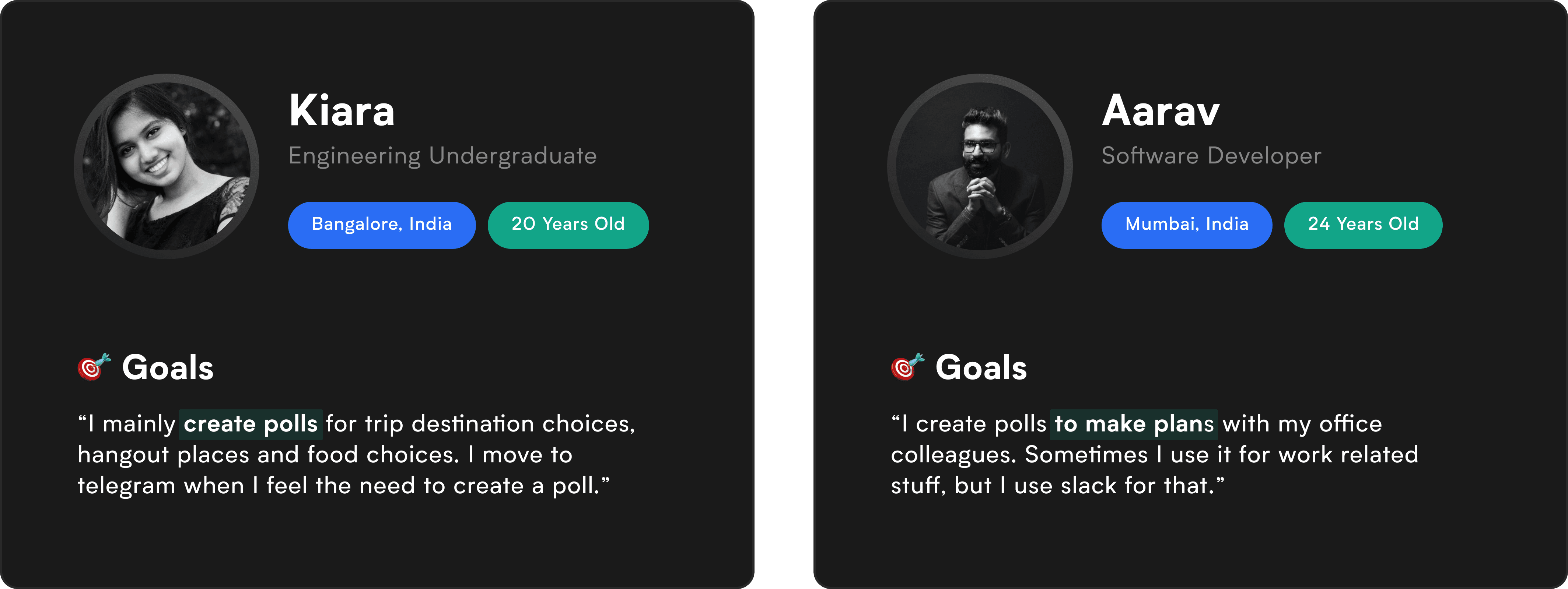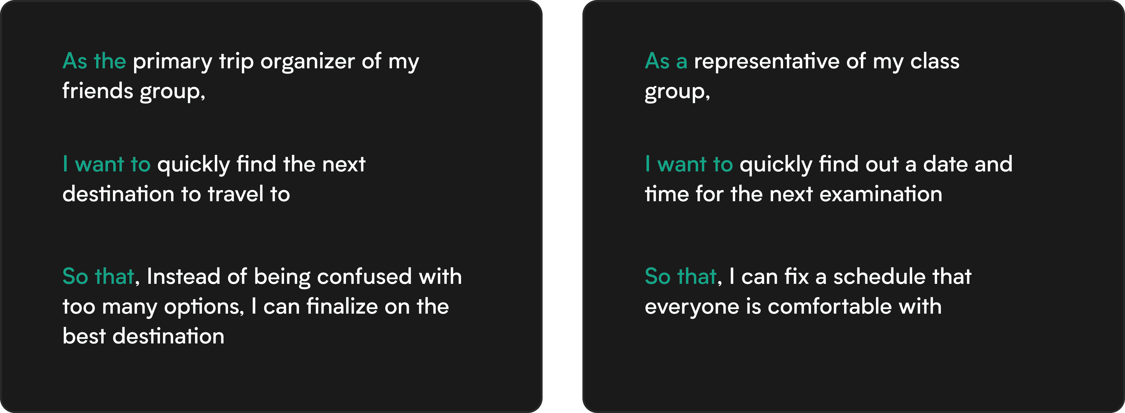 Based on the user persona and some of their underlying motivations, I came up with a couple of user stories supporting the need for polls within WhatsApp.