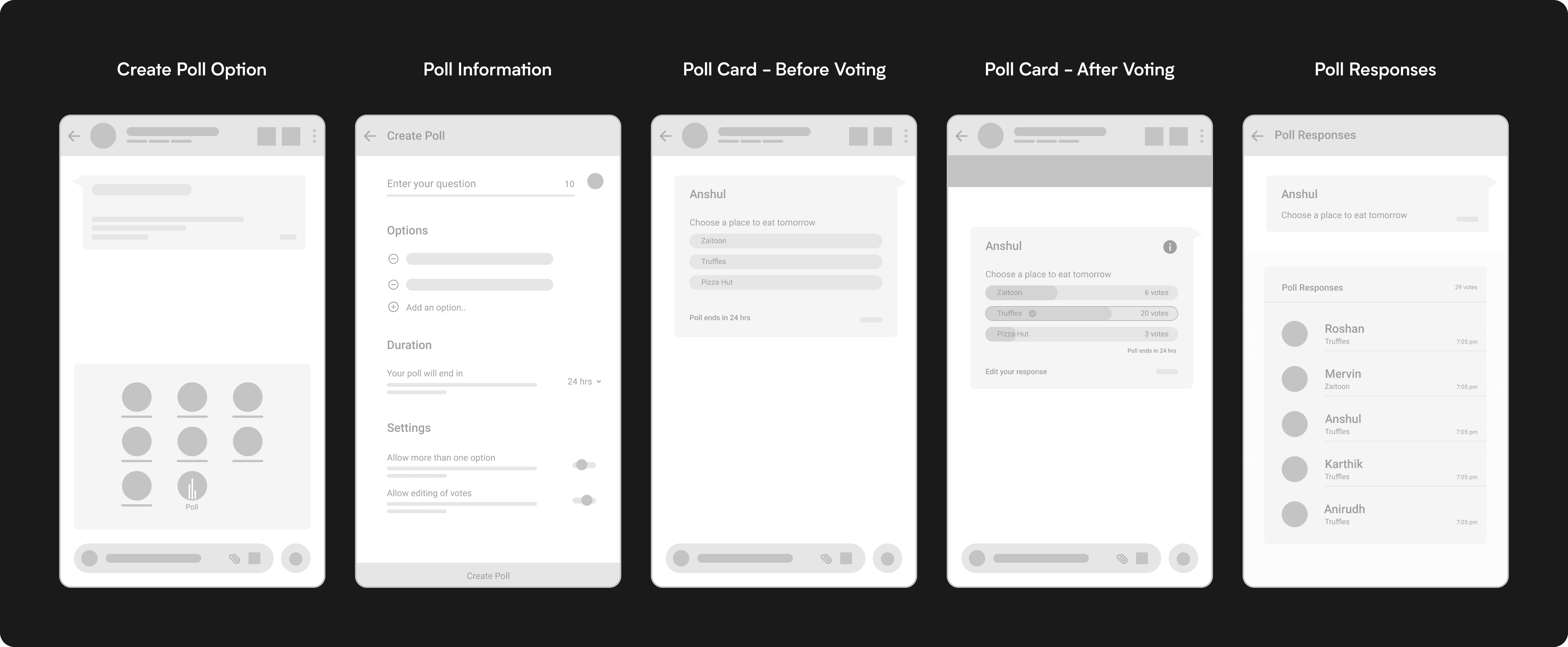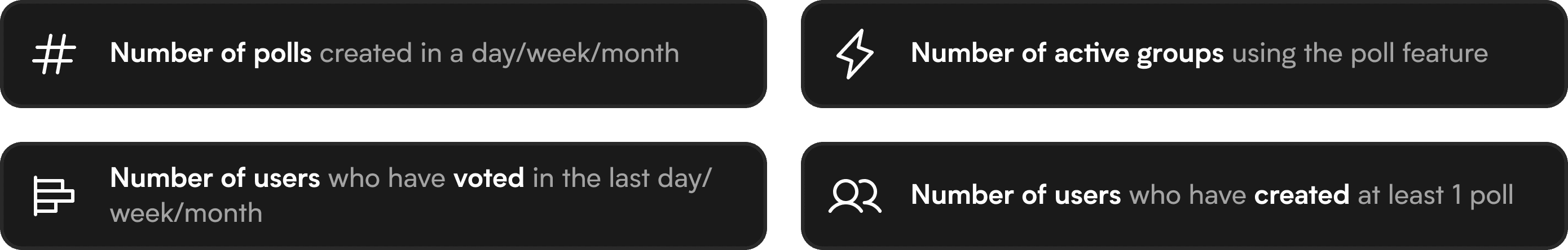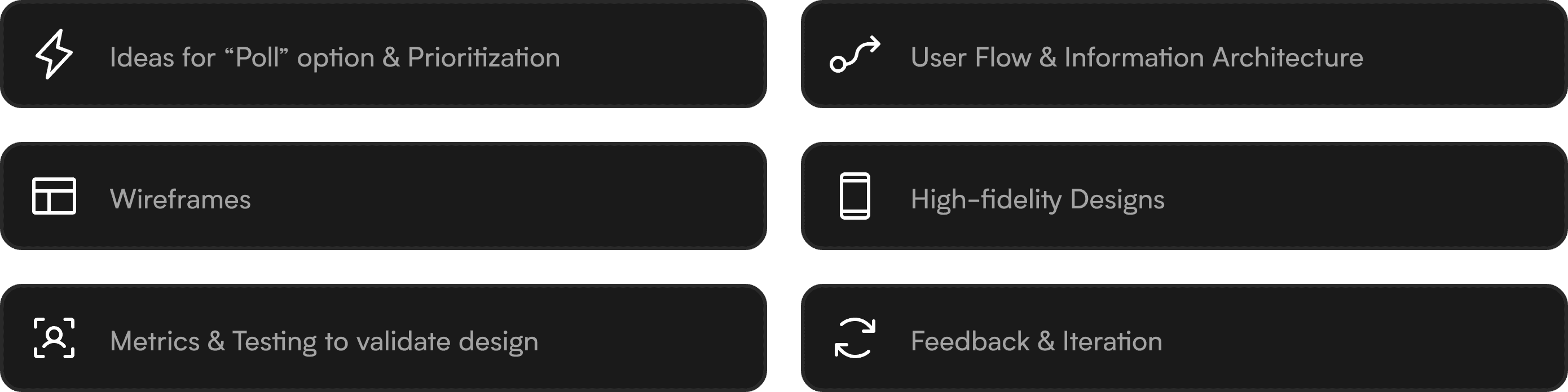 A/B testing could also be done on different variations of the design with a select few users to understand which version of the design gives the desired results. Users can also be asked about their experiences using the poll feature and their feedback for the same.