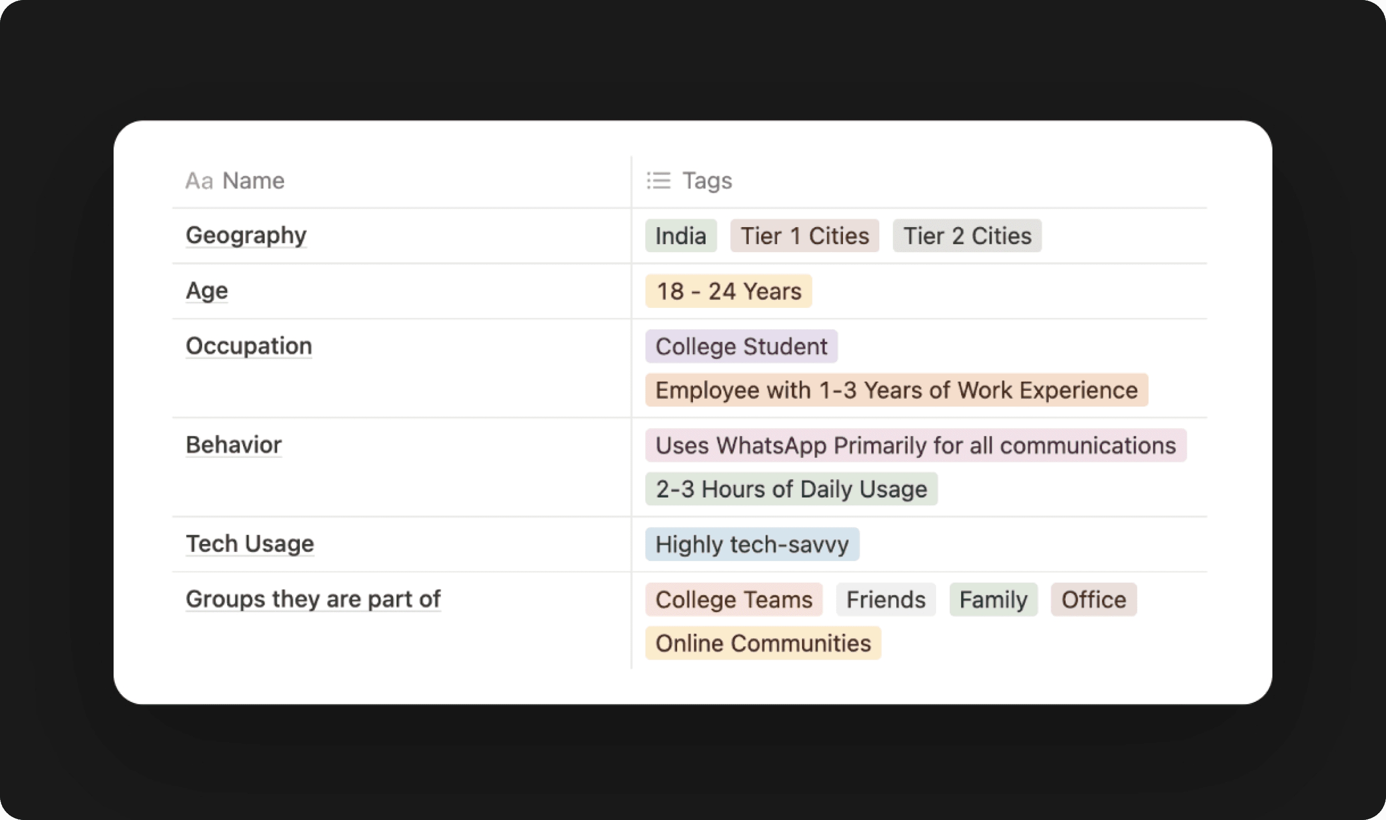 WhatsApp has 2 billion users in over 180 countries. Hence, we can have numerous customer segments based on their geography, age, occupation, gender, behaviour, tech usage etc. For the purpose of this research, I'm considering a user segment that closely matches the 96 people who voted on my Instagram poll.