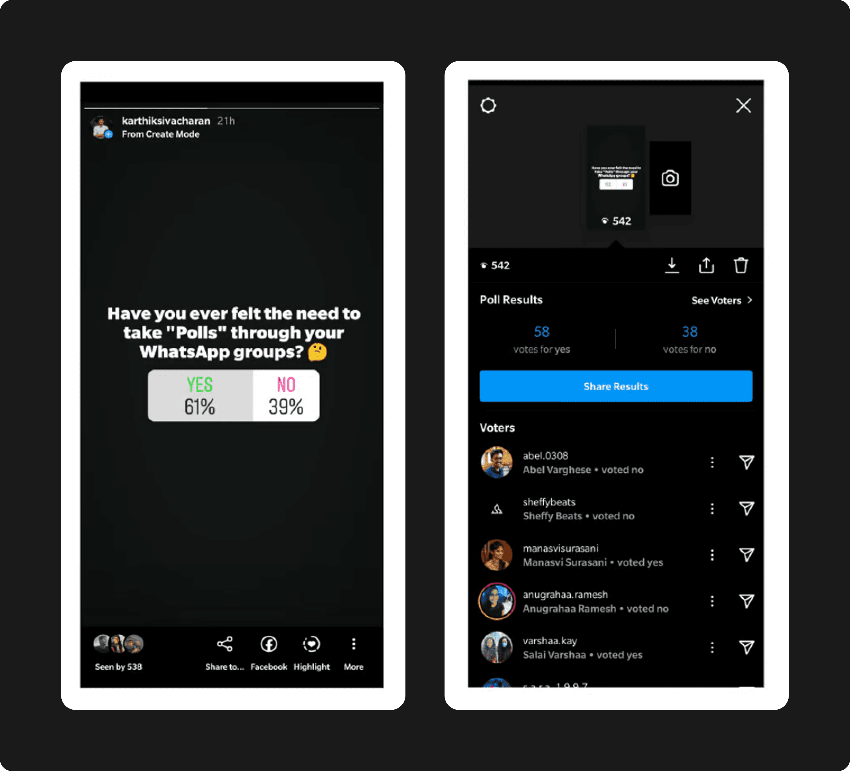 So, I ran a poll on Instagram to test this hypothesis. 96 people voted, out of which 61% said they had felt the need to take “Polls” through their groups.